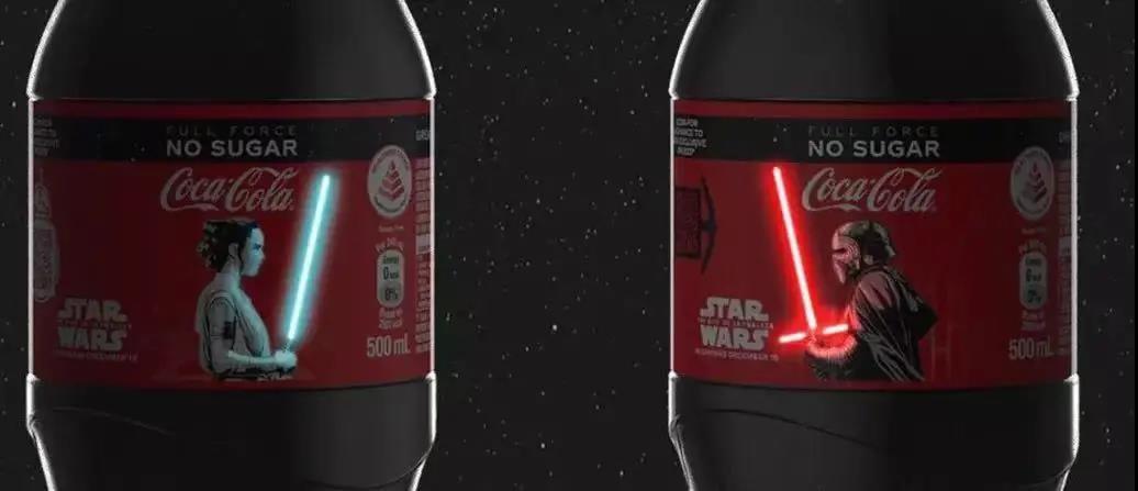 他們將電影《星球大戰(zhàn)》中光劍以O(shè)LED屏幕的方式設(shè)計在了可口可樂瓶身上。粉絲只要觸摸包裝光劍圖案,光劍就會發(fā)光,由電池發(fā)光的瓶身可以被點亮500次。
